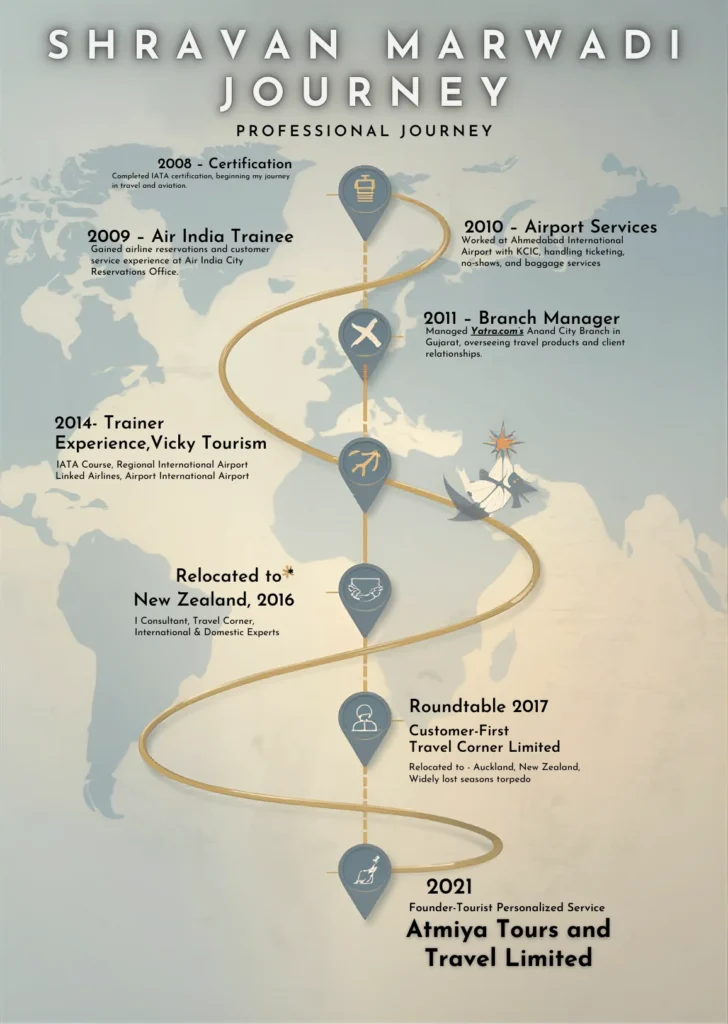 Mr. Shravan Marwadi is the Founder of Atmiya Tours and Travel Limited, a New Zealand–based travel company established in 2021 with a clear and purposeful vision—to create seamless, personalized, and trustworthy travel experiences defined by excellence and integrity.